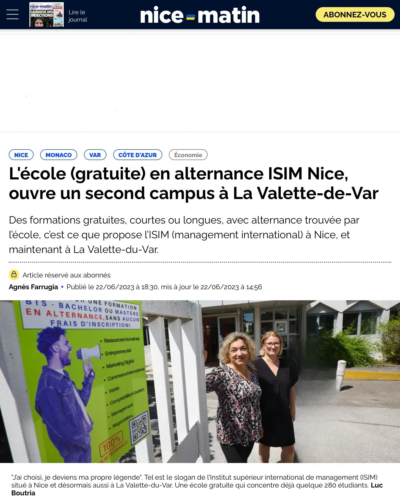 Nous sommes ravis d’annoncer notre apparition dans Nice Matin pour marquer l’ouverture de notre deuxième campus à La Valette du Var !