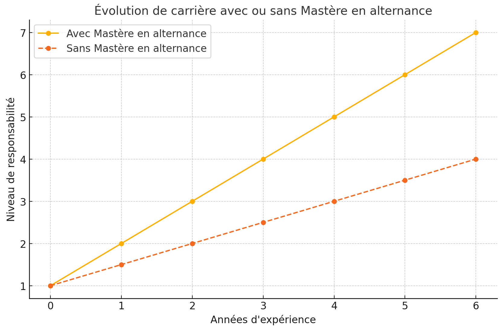 Avec un Mastère en alternance, vous devenez un acteur majeur des projets auxquels vous participez. Ce ne sont pas de simples tâches administratives : vous êtes directement impliqué dans les décisions et leur mise en œuvre. Cette immersion vous prépare à des postes à haute responsabilité, avec des perspectives solides dès la première année de votre programme.